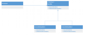 The chain of responsibility design pattern is known as a behavioral pattern consisting of client objects and a series of handler objects. It provides more than one object the opportunity to handle a request by linking receivers together (see left UML diagram). Instead of having one monolithic class, as I have or coupling your code to each and every concrete class, with the chain of responsibility pattern, you can avoid both.